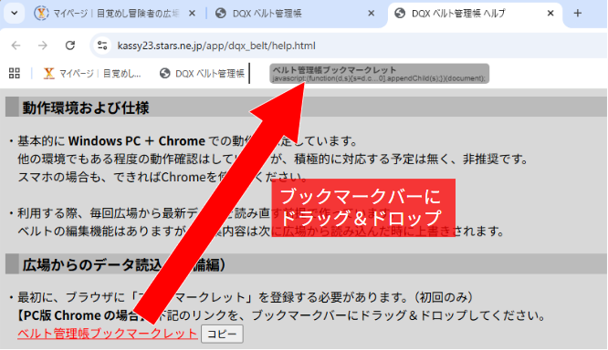 【PC版 Chrome の場合】 下記のリンクを、ブックマークバーにドラッグ&ドロップしてください。